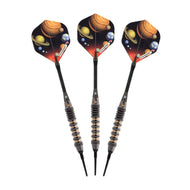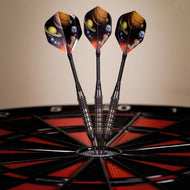 Lleva tu juego a otro nivel con los dardos Elkadart Orbital de punta blanda, diseñados para usarse con dianas electrónicas o la mayoría de las dianas de sisal. Estos dardos están repletos de características, empezando por su barril, fabricado con una aleación de bronce cromado. Esta construcción nos permite ofrecerte barriles resistentes y con peso a un precio accesible. Gracias a su elegante apariencia y durabilidad, esta aleación nos permite brindarte barriles de la más alta calidad al mejor precio. Cada barril cuenta con anillos empotrados que garantizan un agarre preciso lanzamiento tras lanzamiento. Los dardos Orbital incorporan cañas de aluminio resistentes y ligeras. Estas cañas tienen orificios de bloqueo que permiten un ajuste seguro al barril; no tendrás que reajustarlas después de un par de lanzamientos. Finalmente, cada dardo luce un diseño estelar del sistema solar en cada pluma, para un aspecto ultrarrápido. Cada juego incluye tres plumas, tres ejes y tres puntas 2BA Tufflex II.
