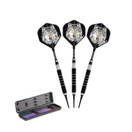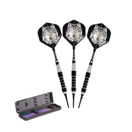 Desata el espíritu del lobo y escucha la llamada de la naturaleza con los dardos de punta blanda Elkadart Lone Wolf, diseñados para usarse con dianas electrónicas o la mayoría de las dianas de sisal. Estos dardos cuentan con numerosas características, empezando por su barril, fabricado en aleación de níquel plata con un revestimiento negro de agarre seguro. Esta construcción nos permite ofrecerte barriles resistentes y con peso a un precio asequible. El niquelado es un método de fabricación que ofrece una apariencia de alta gama y durabilidad a un menor coste. Utilizamos esta aleación para brindarte barriles de la más alta calidad al mejor precio. Cada barril posee bandas moleteadas y anillos empotrados que garantizan un agarre preciso lanzamiento tras lanzamiento. Los dardos Lone Wolf cuentan con cañas de aluminio resistentes y ligeras. Estas cañas tienen orificios de bloqueo que permiten un ajuste más seguro al barril; no tendrás que reajustarlas después de un par de lanzamientos. Por último, cada dardo luce un diseño holográfico de Lone Wolf que adorna cada pluma, otorgándole un aspecto primitivo. Cada juego incluye tres plumas, tres cañas y tres puntas 2BA Tufflex II.