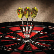 La caza comienza con los dardos de punta blanda Viper Ranger, diseñados para su uso con dianas electrónicas o con la mayoría de dianas de sisal. Estos dardos están repletos de características, empezando por el cañón, fabricado con un 80 % de tungsteno y un 20 % de níquel. El tungsteno es un metal muy denso, capaz de crear dardos más finos con el mismo peso que los metales más ligeros; esto permite agrupaciones de tiros más ajustadas sin sacrificar el control, lo que aumenta sus puntuaciones. El tungsteno también es un signo de calidad y durabilidad debido a su densidad. Un mayor contenido de tungsteno producirá un perfil de dardo más fino que uno con menos. Más tungsteno en el dardo aumenta el precio, ya que el tungsteno es un metal raro y su densidad requiere más esfuerzo para mecanizarlo. El aumento de precio proporciona un cañón de mayor calidad y puede mejorar el rendimiento, lo que aumenta las puntuaciones. Cada cañón cuenta con bandas moleteadas, ranuras profundas y anillos pintados a mano, lo que permite que su agarre se mantenga constante lanzamiento tras lanzamiento. Los dardos Ranger cuentan con varillas de aluminio Color Master resistentes y ligeras, con anillos plateados para una apariencia feroz. Estos ejes cuentan con orificios de bloqueo que permiten un ajuste más seguro al cañón; no tendrás que volver a apretarlos después de uno o dos disparos. Por último, cada dardo está rematado con gráficos de cruceta nítidos que adornan cada pluma delgada, para una apariencia táctica. Cada juego incluye seis plumas delgadas de alta velocidad, tres ejes de nailon adicionales, seis puntas 2BA Tufflex II y una herramienta de reparación mecánica de dardos. ¡Los cañones también cuentan con una garantía limitada de por vida!