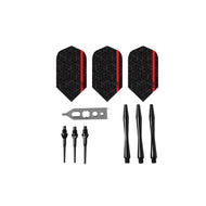 - Incluye seis vuelos, tres ejes de repuesto de nailon adicionales, seis puntas 2BA Tufflex II y una herramienta de reparación mecánica de dardos.
