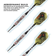 - Los dardos delgados de alta velocidad cuentan con gráficos de cruz nítidos para una apariencia y sensación tácticas.
