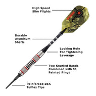 Dardos Viper Ranger de tungsteno al 80% con punta blanda y anillos rojos - 18 gramos