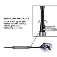 Intimida a tus oponentes y domina tus juegos de dardos con los dardos con punta de acero Viper Underground diseñados para usar con dianas de sisal. Estos dardos están repletos de características, comenzando por el cañón, fabricado con aleación de latón y acero de tungsteno. Construir los dardos de esta manera nos permite ofrecerte cañones resistentes y pesados sin gastar una fortuna. Los dardos de más alta gama tienen una apariencia única gracias al tungsteno del que están fabricados. El latón chapado en acero de tungsteno te brinda una apariencia de alta gama y una durabilidad similar al tungsteno a un menor costo. Usamos esta aleación para proporcionar cañones de la más alta calidad al mejor costo para ti. Cada cañón con peso frontal disfruta de ranuras que mejoran el agarre, lo que permite que la colocación de tu mano se mantenga constante lanzamiento tras lanzamiento. Los dardos Underground cuentan con varillas de aluminio resistentes y livianas. Estas varillas cuentan con orificios de bloqueo que permiten un ajuste más seguro a tu cañón; no tendrás que volver a apretar estas varillas después de un tiro o dos. Por último, cada dardo se completa con cuatro diseños diferentes y aterradores de Underground que adornan cada pluma, para lograr un aspecto sensacional. Cada juego incluye seis plumas de deslizamiento ancho, tres varillas de nailon adicionales y una herramienta de reparación mecánica de dardos.