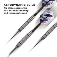 - Los dardos delgados de alta velocidad cuentan con la opción de elegir entre cuatro diseños gráficos intimidantes diferentes para una apariencia y sensación aterradoras.