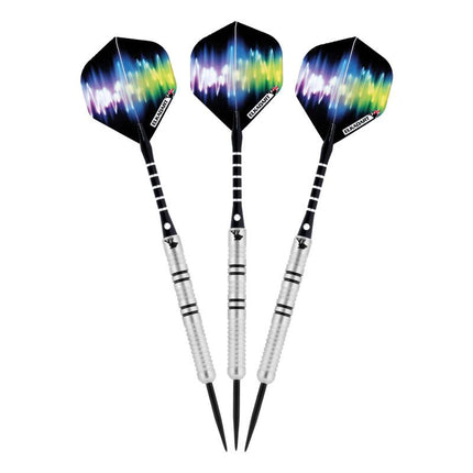 Rompe la barrera del sonido y lleva tu juego al siguiente nivel con los dardos Elkadart Ultra Sonic de punta de acero, diseñados para usarse con dianas de sisal. Estos dardos están repletos de características, empezando por su barril, fabricado con un 80 % de tungsteno y un 20 % de níquel. El tungsteno es un metal muy denso, capaz de crear dardos más delgados con el mismo peso que los de metales más ligeros; esto permite agrupaciones de tiros más cerradas sin sacrificar el control, aumentando así tus puntuaciones. El tungsteno es sinónimo de calidad y durabilidad gracias a su densidad. Un mayor contenido de tungsteno produce un perfil de dardo más delgado que uno con menor contenido, y el 80 % es uno de los porcentajes más altos que encontrarás en un juego de dardos. Un mayor contenido de tungsteno en el dardo aumenta el precio, ya que es un metal escaso y su densidad requiere un mayor esfuerzo para su mecanizado. El precio más elevado se traduce en un barril de mayor calidad y puede mejorar el rendimiento, aumentando las puntuaciones. Cada barril posee estrías y anillos empotrados que permiten un agarre preciso lanzamiento tras lanzamiento. Los dardos Ultra Sonic cuentan con resistentes y ligeros ejes de aluminio. Estas cañas cuentan con orificios de bloqueo que permiten un ajuste más seguro al barril; no tendrás que reajustarlas después de un par de lanzamientos. Además, cada dardo está decorado con diseños de ondas sonoras ultrasónicas en las plumas, lo que le da un aspecto único. Cada juego incluye tres plumas y tres cañas. Fabricado con orgullo en Inglaterra.