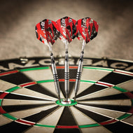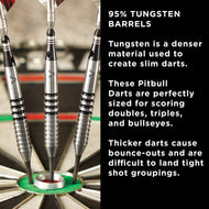- Barriles de tungsteno al 95 %: la elección de cualquier dardo profesional, los dardos de tungsteno son más duraderos que los de níquel o latón y tienen un perfil delgado para agrupaciones de disparos más ajustadas y puntajes más altos.