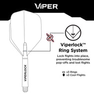 Las plumas Viper Cool están fabricadas con polímeros flexibles y adaptables que permiten que las cuatro aletas mantengan el ángulo ideal de 90° mejor que las plumas plegables tradicionales. Estas plumas de dardos moldeadas con precisión cuentan con una construcción de 400 micrones para una durabilidad a largo plazo. Los anillos de vástago Viperlock incluidos sujetan de forma segura las plumas Cool a cualquier varilla de plástico o nailon para una sujeción confiable que durará lanzamiento tras lanzamiento. No están diseñadas para usarse con varillas de metal.