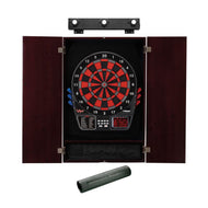 Tablero de dardos electrónico Viper 797, gabinete de caoba Metropolitan, tapete para dardos y paquete de luz para tablero de dardos Shadow Buster