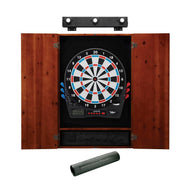Paquete de tablero de dardos electrónico Viper Showdown, gabinete Metropolitan Cinnamon, tapete para dardos y luz para tablero de dardos Shadow Buster