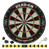 Lánzate de cabeza al mundo de los dardos con la diana de sisal Dead-On de Viper. Esta diana de dardos con punta de acero de calidad profesional de 17,75” está hecha con fibras de sisal autorreparadoras para garantizar una larga vida útil. Los segmentos de puntuación están separados por un alambre de acero triangular y la diana interior no tiene grapas para ayudarte a dar en el blanco, lo que reduce los rebotes y las desviaciones. La diana con punta de acero Dead-On también cuenta con un anillo de números movible; simplemente separa y gira la diana para reducir el desgaste en las secciones más utilizadas. ¡Esto extiende significativamente su vida útil y te ahorra dinero! Para completar el paquete, hemos incluido hardware de montaje fácil de usar y un manual de juego para que puedas comenzar.