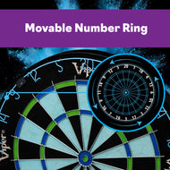 - Anillo numérico giratorio : el anillo numérico desmontable le permite girar el tablero, lo que permite que las fibras de sisal se curen y prolonguen la vida útil del tablero de dardos.