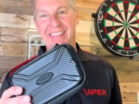 - Construcción superior: Este estuche para dardos cuenta con un exterior de fibra de carbono, una cremallera resistente, compartimentos de espuma que se ajustan a la forma, una correa de muñeca y una banda elástica para mantener todo seguro.
