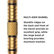 Join the ranks of the exclusive darting club with the Viper Elite Brass Soft Tip Darts, designed for use with either electronic dart boards or most sisal dart boards. These darts are packed with features starting with the barrel, fashioned from an exceptional brass alloy. Constructing the darts in this fashion allows us to bring you tough, weighted barrels without breaking the bank. Brass is an alloy that has been used in construction for its durability and great looking style, while maintaining a lower cost. We use this alloy to provide the highest quality barrels at the best cost to you. Each barrel possesses heavily knurled bands, deep grooves and hand-painted rings, allowing your grip to remain consistent throw after throw. The Elite Brass Darts feature tough, lightweight nylon shafts. Finally, each dart is finished off with classic target holographic designs adorning each flight, for a time-honored look on each dart. Each set includes three flights, three shafts, and three 2BA Tufflex II Tips.