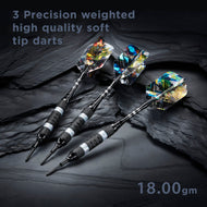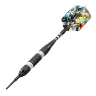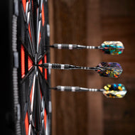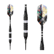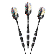 Bring a new cold-blooded precision to your dart game with the Viper Black Ice Soft Tip Darts, designed for use with either electronic dart boards or most sisal dart boards. These darts are packed with features starting with the barrel, fashioned from brass alloy. Constructing the darts in this fashion allows us to bring you tough, weighted barrels without breaking the bank. Brass is an alloy that has been used in construction for its durability and great looking style, while maintaining a lower cost. We use this alloy to provide the highest quality barrels at the best cost to you. Each barrel enjoys hand taped rings, heavily knurled bands, allowing your grip to remain consistent throw after throw. The Black Ice Darts feature tough, lightweight aluminum shafts. These shafts feature locking holes that allow a more secure fit to your barrel; you won’t find yourself retightening these shafts after a shot or two. Finally, each dart is finished off with magnificent Black Ice holographic designs adorning each flight, for a thrilling look on each dart. Each set includes three extra flights, three extra nylon shafts, six 2BA Tufflex II Tips, and a dart mechanic repair tool.