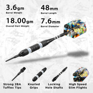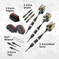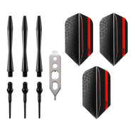 - Includes six flights, three extra nylon replacement shafts, six 2BA Tufflex II Tips, and Dart mechanic repair tool.