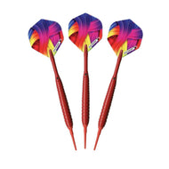 Show off your personality and find your favorite color when you bring the Elkadart Neon Soft Tip Darts, designed for use with either electronic dart boards or most sisal dart boards. These darts are packed with features starting with the barrel, fashioned from specially color coated metal alloy. Constructing the darts in this fashion allows us to bring you tough, weighted barrels without breaking the bank. Used in construction for its high end appearance and durability at a lower cost, we use this alloy to provide the highest quality barrels at the best cost to you. Choose the color that fits your style! Each barrel possesses recessed rings, allowing your grip to remain precise throw after throw. The Neon Darts feature tough, lightweight aluminum shafts. These shafts feature locking holes that allow a more secure fit to your barrel; you won’t find yourself retightening these shafts after a shot or two. Each included shaft is coated to match its barrel. Finally, each dart is finished off with stunning neon rainbow designs adorning each flight, for an astonishing look on each dart. Each set includes three flights, three shafts, and three 2BA Tufflex II Tips.