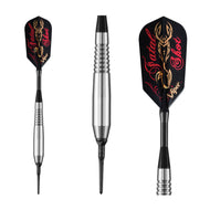 Intimidate your opponents and dominate your dart games with the Viper Underground Soft Tip Darts, designed for use with either electronic dart boards or most sisal dart boards. These darts are packed with features starting with the barrel, fashioned from Tungsteel-brass alloy. Constructing the darts in this fashion allows us to bring you tough, weighted barrels without breaking the bank. The highest end darts have a unique appearance from the tungsten from which they are fashioned. Tungsteel plated brass gives you the high end appearance and durability similar to tungsten at a lower cost. We use this alloy to provide the highest quality barrels at the best cost to you. Each front-weighted barrel enjoys grip-enhancing grooves, allowing your hand placement to remain consistent throw after throw. The Underground Darts feature tough, lightweight aluminum shafts. These shafts feature locking holes that allow a more secure fit to your barrel; you won’t find yourself retightening these shafts after a shot or two. Finally, each dart is finished off with your choice of four different terrifying Underground designs adorning each flight, for a sensational look on each dart. Each set includes six high speed slim flights, three extra nylon shafts, and six 2BA Tufflex II Tips.