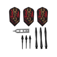 - Includes six flights, three extra nylon replacement shafts, six 2BA Tufflex II Tips, and Dart mechanic repair tool.