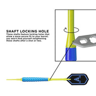 - Matching Neon Aluminum Shafts feature locking holes, the most secure way to fasten shafts to barrels and improve stability.