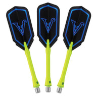 - Includes three translucent V Glo flights, three neon aluminum shafts, and three color matching 2BA Tufflex II Tips.