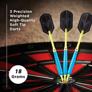 Stand out among your competitors, and bring dazzling flash to your dart game with the Viper V Glo Soft Tip Darts, designed for use with either electronic dart boards or most sisal dart boards. These darts are packed with features starting with the barrel, fashioned specially coated brass alloy. The barrels are colored in audacious neon colors. Constructing the darts in this fashion allows us to bring you tough, weighted barrels without breaking the bank. Brass is an alloy that has been used in construction for its strength and durability at a lower cost. We use this alloy to provide the highest quality barrels at the best costs to you. Each barrel enjoys barrel grooved rings along the length of the barrel, allowing your grip to remain consistent throw after throw. The V Glo Darts feature tough, lightweight Aluminum Shafts whose color compliments the bold barrel colors. These shafts feature locking holes that allow a more secure fit to your barrel; you won’t find yourself retightening these shafts after a shot or two. Finally, each dart is finished off with the flashy holographic desert rose designs adorning each flight, for a dazzling look. Each set Includes three translucent V Glo flights, three neon aluminum shafts, and three color matching 2BA Tufflex II Tips.