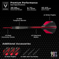 Viper Black Flux 90% Tungsten Steel or Soft Tip Conversion Darts Red 20 Grams