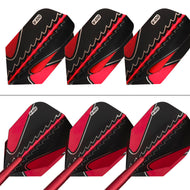 The exclusive Viper Black Flux 90% Tungsten Conversion Dart Set comes with a set of steel tip converter points and soft tips, which allows this set of darts to be used on both sisal and electronic dartboards. The high quality 90% Tungsten barrels are perfect for anyone looking for a professional dart set, capable of tight groupings for higher scores. Each set of Flux conversion darts will come with a set of converter points, soft dart tips, three barrels, a set of standard dart flights, a set of slim dart flights, o-rings, and Viperlock Aluminum Shade Shafts.