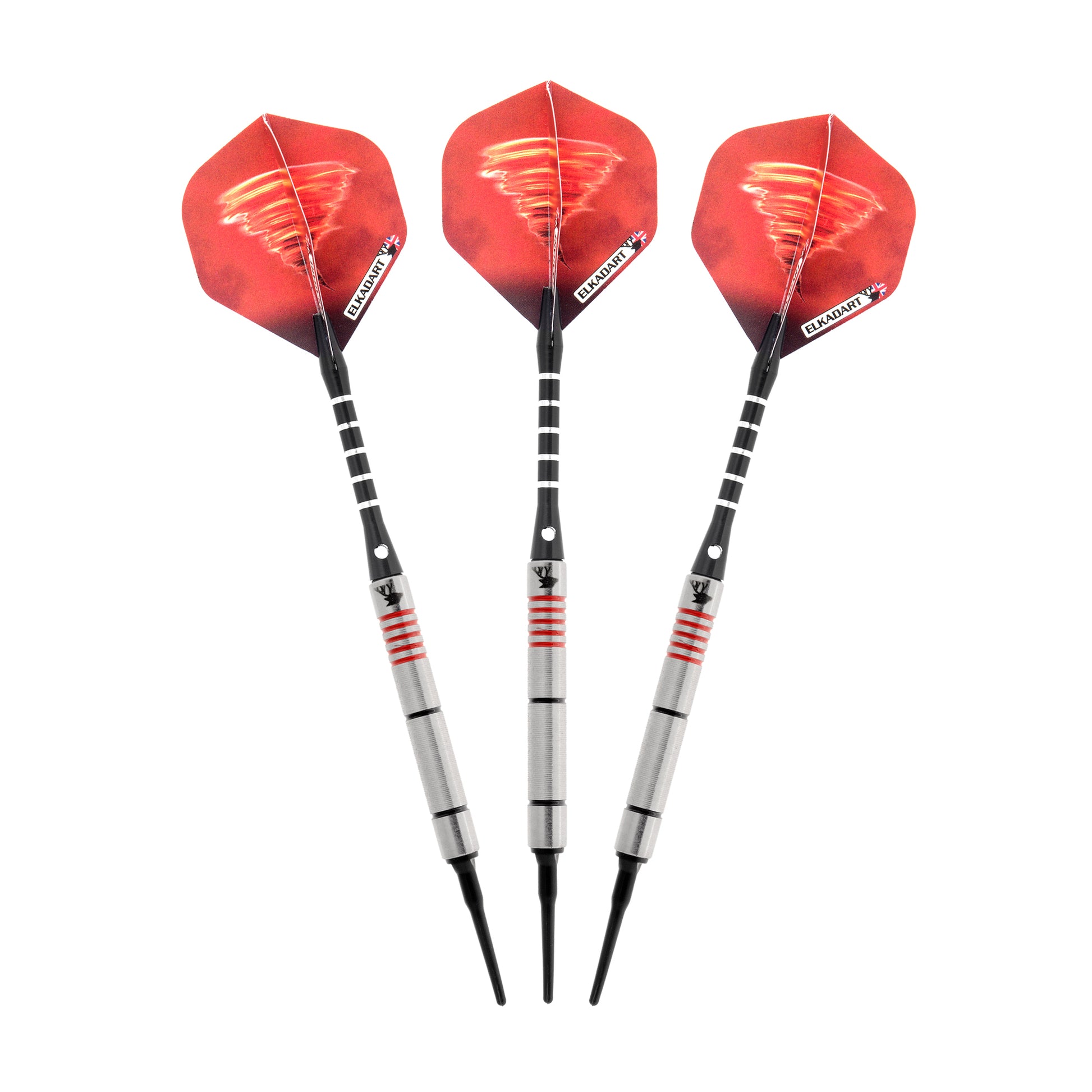 Elkadart Tornado 90% Tungsten Soft Tip Dart Set 4 Red and 2 Black Rings