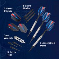 - Includes six flights, three extra nylon replacement shafts, six 2BA Tufflex II Tips, and Dart mechanic repair tool.