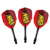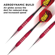 BAM! POW! Ka-BOOM! Embrace your inner hero and make an impact with the Viper Comix Steel Tip Darts designed for use with sisal dart boards. These darts are packed with features starting with the barrel, fashioned from brass alloy. Constructing the darts in this fashion allows us to bring you tough, weighted barrels without breaking the bank. Brass is an alloy that has been used in construction for its durability and great looking style, while maintaining a lower cost. We use this alloy to provide the highest quality barrels at the best cost to you. Each barrel enjoys unique grooves along the barrel, found on no other dart, allowing your grip to remain consistent throw after throw. The Comix Darts feature tough, lightweight aluminum shafts. These shafts feature locking holes that allow a more secure fit to your barrel; you won’t find yourself retightening these shafts after a shot or two. Finally, each dart is finished off with awesome comic graphics featuring BAM, POW, AND Ka-BOOM adorning each flight, for a marvelous look on each dart. Each set includes three extra flights, three extra nylon shafts, and a dart mechanic repair tool.