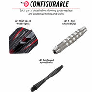 - Configurable - Each part of the dart is detachable so you can replace or upgrade the flights, shafts, and tips as needed