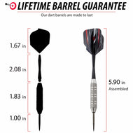 - Lifetime Barrel Guarantee - Each dart comes with a lifetime barrel guarantee, so you can be sure they will last