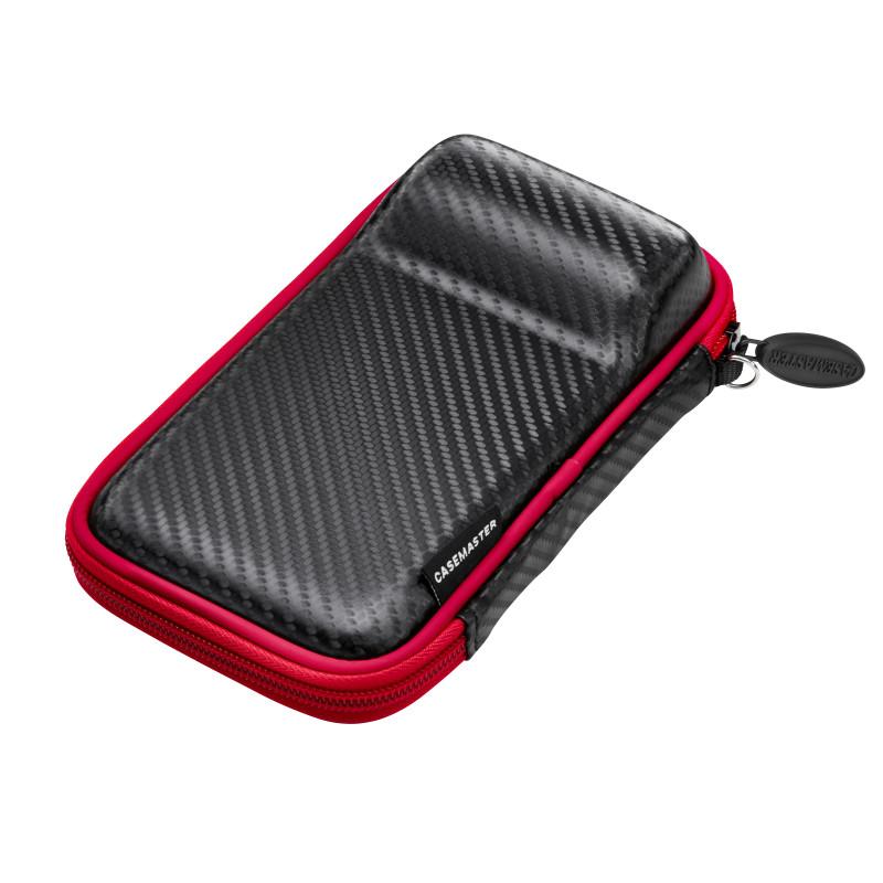 Looking for a dart case with the perfect balance of style and performance? The Casemaster Sport three dart case has got you covered! The Sport features a TacTech outer shell to keep darts protected under the toughest conditions. The prized possession of any darter is their darts, and the Sport can store three of them fully assembled and ready to play. This case features an extended Flight Form profile that protects open flights, leading to longer lifespans and a truer flight path. Stitched holsters secure your darts firmly to prevent breakage and keep you shooting. The Sport accommodates plenty of spare parts, with a hard EVA molded foam insert and Perfect-Fit pockets to tightly hold two sets of shafts or tips and four sets of spare flights. The EVA insert even has a slot for a dart tool, so you’ll never miss a beat due to a broken dart. The textured exterior provides extra grip in the hand or on slippery tables, all with a sleek and modern carbon effect finish and low-profile branding. Finally, keeping your darts in reach is easy with the convenient carabiner ring. Available in three vibrant color highlights: blue, red, and black.