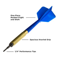 Make your establishment a darting hotspot with the Viper Commercial Bar Darts! If you’ve got lots of people playing darts at your business, or maybe you have friends over once in a while and don’t want them ruining your Tungsten Beauties, the Viper Bar Darts are the perfect solution to your needs. These economical darts will give you the durability required for heavy use at an unbeatable price, allowing you to stock up and make sure that everyone has a set to shoot with! The steel barrels featuring a knurled grip, so they won’t be slipping out of hands as easily as the starter darts you might get with your board. Flight and shaft are molded into one piece saving time and headaches from losing smaller pieces. These flights come in four different colors so you can add variety to your games, and set up teams. Extra flights and tips are available separately, so you can replace pieces as opposed to whole darts.