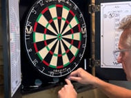 Complete the classic look of your game room with the Hudson Dartboard Cabinet, constructed from 100% solid pine. The construction quality in this cabinet is top notch, using box joints and self-closing brushed nickel hinges. The mahogany or black finish of this cabinet goes with any traditional decor, but will not look out of place in a more modern or transitional scheme. Built directly into the cabinet doors are a convenient Cricket scoreboard with dry erase marker and a handy out-chart gives you the surest path to victory. This cabinet also has convenient dart storage, so you’ll never need to worry about losing your equipment. You’ll hang your cabinet with easy-to-use mounting hardware and complete your game room with the Hudson Dartboard Cabinet.