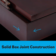 - Solidly constructed from solid pine with box joints and brushed nickel hinges.