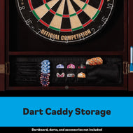 - Built-in storage compartment incorporated within the cabinet can hold all of your darts and extra flights.