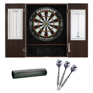 Viper Espresso Metropolitan Steel Tip Cabinet, Viper Razorback Sisal Dartboard, Viper Underground Raven Steel Tip Darts 25 Grams, and Viper Vinyl Dart Mat