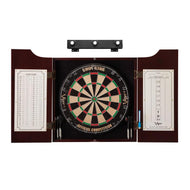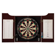 Go all in with the Viper Hudson All-in-One Dart Center & Shadow Buster Dartboard Light Bundle! This comprehensive combo has everything you need to turn your game room into Darts Central! The Shot King is Tournament Quality Regulation 17.75" in diameter and made from compressed sisal fibers, granting it substantial longevity in comparison to older, wood-based boards. This is due to the material's "self-healing" nature: the sisal fibers automatically close the holes left behind by your darts, essentially returning the board to its original state whenever a dart is removed. You can also rotate the detachable number ring around the board, allowing your prime spots to move to a new section when the previous ones wear down. Its staple-free bullseye and rounded, galvanized steel wire spider also significantly decrease your odds of bouncing out upon impact, and if you want to get started right away, six starter darts are included to let you shoot first and ask questions later. Meanwhile, the Hudson Cabinet containing the board is constructed from pine and held together via box joints; its back is reinforced with thick cloth to protect your wall from punctures. The doors of the cabinet are fitted with self-closing brushed nickel hinges and feature built-in dry erase scoreboards. Darts and other accessories can be stored in the compartment below the board area. The Shadow Buster illuminates your dartboard from above, making it - and all of your targets - visible in any rec room at any time. It also flips up when not in use and runs on four AA batteries.