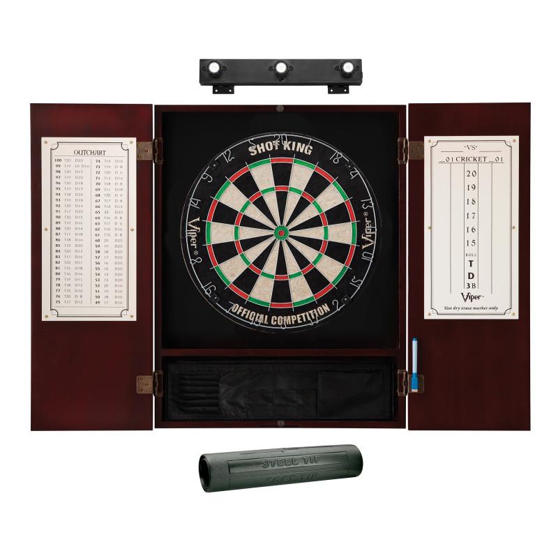 Viper Shot King Sisal Dartboard, Metropolitan Mahogany Cabinet, Shadow Buster Dartboard Lights & Padded Dart Mat Darts Viper