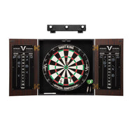 Get your dart game started off right! This comprehensive bundle includes everything you need to make a stylish addition to your game room. Each set includes a premium dartboard cabinet, a sisal dartboard, and a Shadowbuster dartboard illuminator. The dartboard cabinet is made from solid pine and constructed with box joints and bronze hinges for a classic look. A dry erase scoreboard and out chart come included with the cabinet. The regulation sized dartboard features a rounded galvanized spider, allowing your darts to slide off and into the target area. Made from self-healing sisal fibers, you will surely enjoy your dartboard for years. A Shadowbuster Dartboard Illuminator allows perfectly clear vision. Included are two sets of starter darts, dry erase scoreboard, out chart board, dry erase marker and mounting hardware.