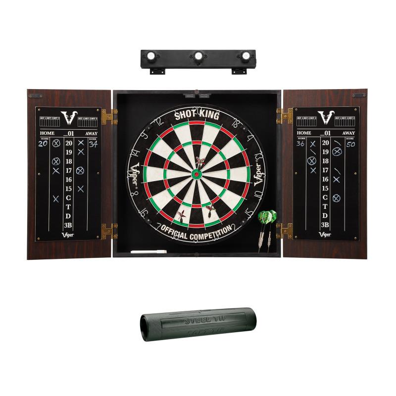 Viper Stadium Cabinet with Shot King Sisal Dartboard, Shadow Buster Dartboard Lights & Padded Dart Mat