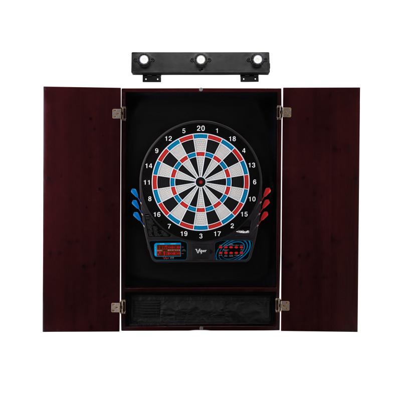 Viper 777 Electronic Dartboard, Metropolitan Mahogany Cabinet & Shadow Buster Dartboard Lights