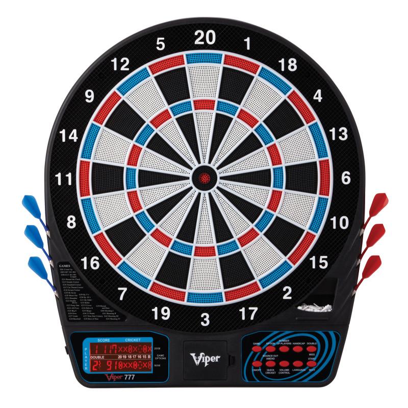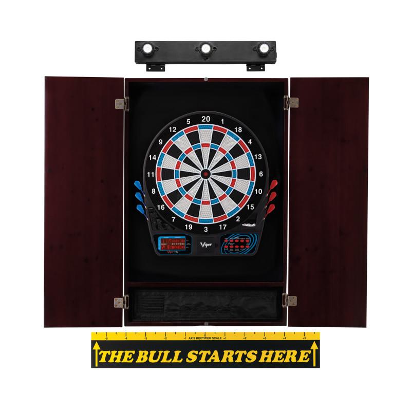 Viper 777 Electronic Dartboard, Metropolitan Mahogany Cabinet, "The Bull Starts Here" Throw Line Marker & Shadow Buster Dartboard Lights