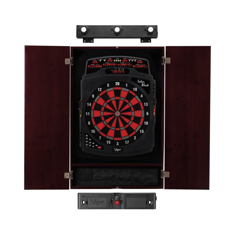 Viper Solar Blast Electronic Dartboard, Metropolitan Mahogany Cabinet, Laser Throw Line Marker & Shadow Buster Dartboard Lights
