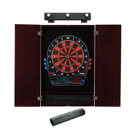 Begin your darting journey! This comprehensive bundle includes everything you need to make a stylish addition to your game room. Each set includes a premium dartboard cabinet, a Viper Orion electronic dart board designed for Soft Tip darts. The dartboard cabinet is made from solid pine and constructed with finger joints and bronze hinges for a classic look that will match well with a traditional décor. The Orion features a regulation 15.5” target face gives a unique darting experience with its dual Jumbo LCD scoring display. With 43 games and over 300 scoring options, you and your crew will surely never run low on variety. The stylish color scheme utilizes sharp red and silver on a deep black to make your board stand out among competitors. The Orion features Target Tested Tough segments that will stand up to the toughest bombardment, in addition to an ultra-thin spider to minimize bounce-outs. Furthermore, the Orion electronic dart board features concave segment holes that lock in your shots. The scoreboard can utilize a cricket quick key to get you playing immediately. The multiplayer feature supports up to 16 players, so no one is left behind. A High tech cabinet light brings a new brightness to your games and a high tech laser throwline marks off the proper throw distance with no adhesive necessary.