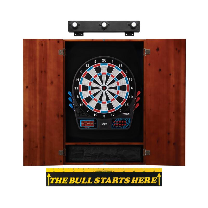 Viper 777 Electronic Dartboard, Metropolitan Cinnamon Cabinet, Throw Line Marker & Shadow Buster Dartboard Light Bundle