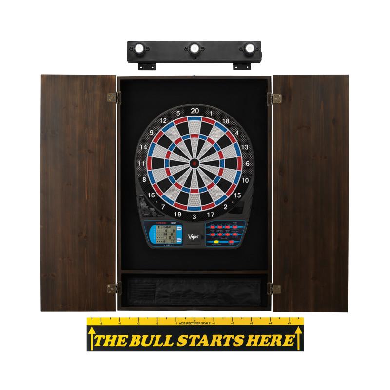 Viper 787 Electronic Dartboard, Metropolitan Espresso Cabinet, Throw Line Marker & Shadow Buster Dartboard Light Bundle