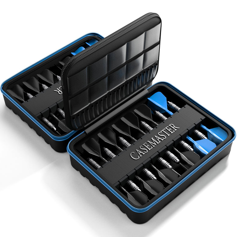 Step up your dart game with the Casemaster Maxx 8 Dart Case, engineered for players who demand pro-level protection and organization. Designed to hold 8 full sets of fully assembled darts, this premium dart case keeps your flights pristine and crush-free, making it ideal for molded flight users. The high-density, laser-cut foam holder locks your darts securely in place, while a durable elastic strap ensures they don’t budge during transport. Made from heavy-duty Oxford fabric bonded with EVA foam, this dart case resists scratches, scuffs, and water, giving you long-lasting durability.
