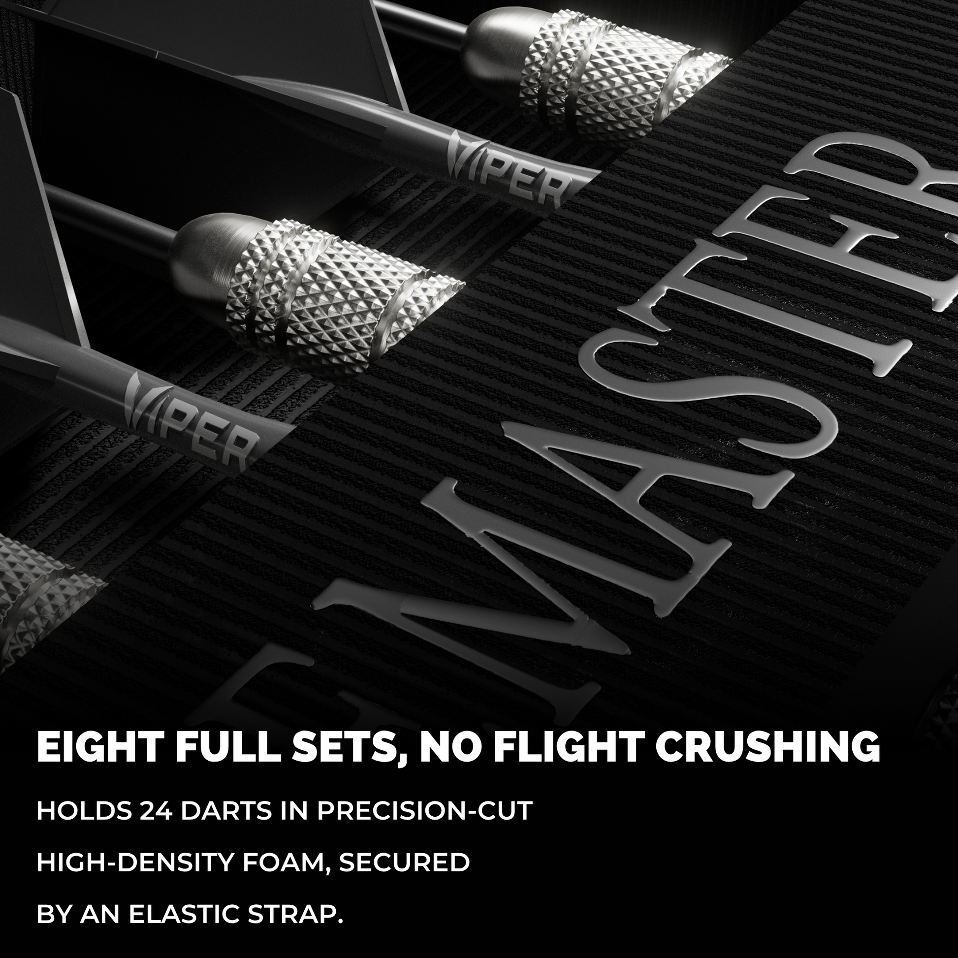 - 8 Full Sets, No Flight Crushing – Holds 24 darts in precision-cut high-density foam, secured by an elastic strap.